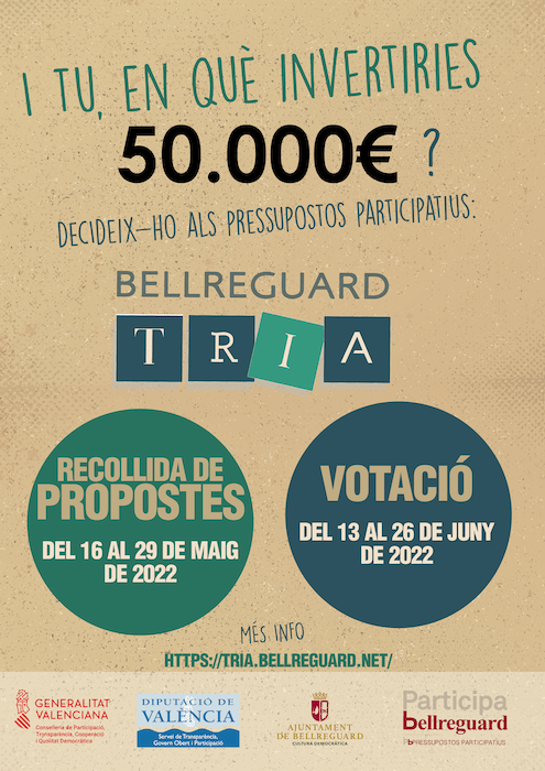 Hasta el 29 de mayo tienen de tiempo para sugerir las iniciativas o proyectos que desean que se desarrollen en Bellreguard. Para estos proyectos, el consistorio cuenta con un total de 50.000 euros procedentes del presupuesto municipal del 2022.